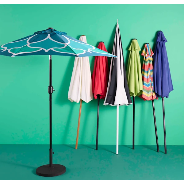 You'll have it made in the shade with our solid navy 9-foot umbrella. Entertain guests in style with this aluminum patio umbrella that's just as much functional as it is a decorative piece. Designed with style and durability in mind, the fabric blocks UV rays, keeping you and your guests completely comfortable. Plus, with 8 durable ribs, tilt and crank mechanism and a sturdy pole that fits most patio tables and umbrella stands, this umbrella offers excellent value while casting its shady pleasure.